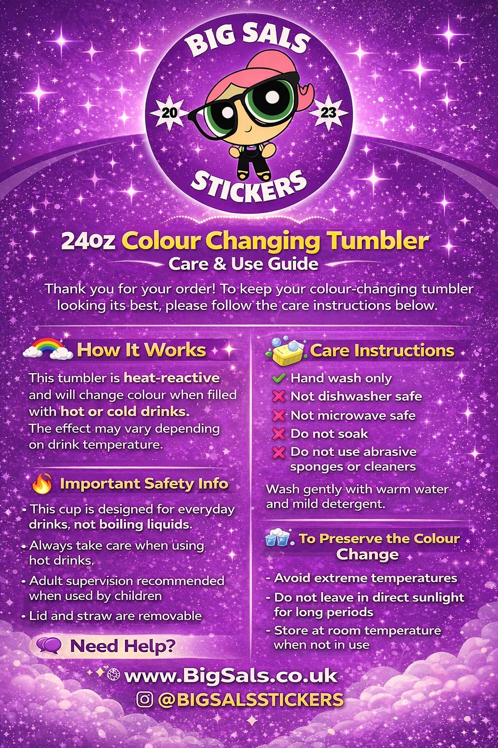 The Big Sals 24oz Colour Changing Tumbler Cup adds an interactive, eye-catching twist to everyday drinks. Designed to react to temperature, this reusable cup changes colour when hot or cold liquids are added, making every drink more fun and visually engaging.