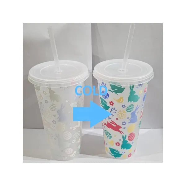 Each cup is supplied brand new and complete with a matching lid and reusable straw. The design reacts to temperature changes, creating a colour-changing effect that varies depending on the drink added.